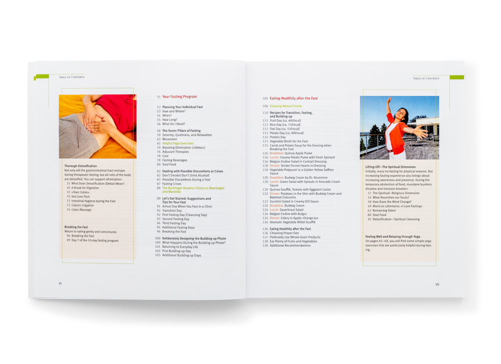 The Buchinger Wilhelmi Amplius method: Françoise Wilhelmi de Toledo, a physician specialized in fasting, scientific director of the renowned Buchinger clinics in Überlingen, Germany and Marbella, Spain, and wife of Otto Buchinger’s grandson, contributes her personal fasting experience to enhance any fasting cure.