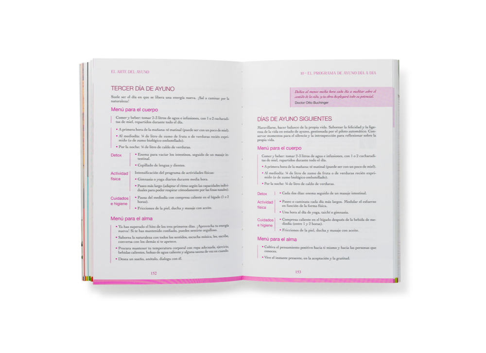 ´Françoise Wilhelmi de Toledo, médica especialista en ayuno, copropietaria de las renombradas clínicas Buchinger Wilhelmi de Überlingen y Marbella y esposa del nieto de Otto Buchinger, enriquece cada cura de ayuno con sus experiencias personales como ayunante. Vivencia para todos los sentidos: con el práctico plan semanal, su semana de ayuno será un éxito total. Numerosos ejercicios prácticos, desde el yoga y el masaje abdominal hasta la respiración correcta, sin olvidar consejos motivadores, garantizan una sensación de bienestar incomparable. Comer de forma saludable después del ayuno: interrumpir el ayuno y retomar suavemente una dieta sólida es lo más importante de una semana de ayuno. En este libro encontrará cómo hacerlo sin esfuerzo y desarrollar una nueva conciencia nutricional. Más de 40 recetas de slow-food “made in Buchinger Wilhelmi Bodensee” abrirán el apetito por el placer de la cocina sana en el día a día.