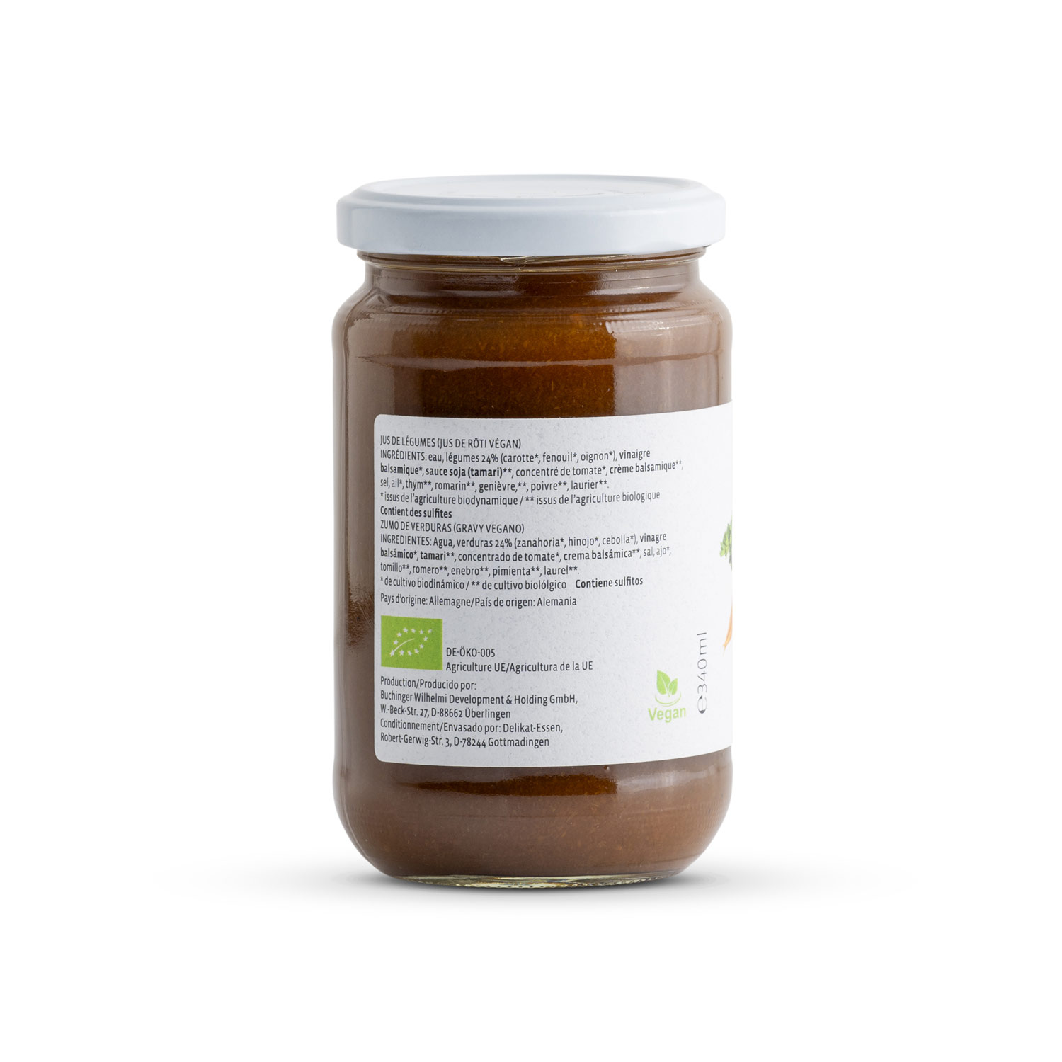 Nuestro delicioso zumo de verduras es también un auténtico placer para el paladar. La salsa vegana elaborada con verduras orgánicas certificadas por Demeter es un hito culinario, la guinda de sus platos caseros.